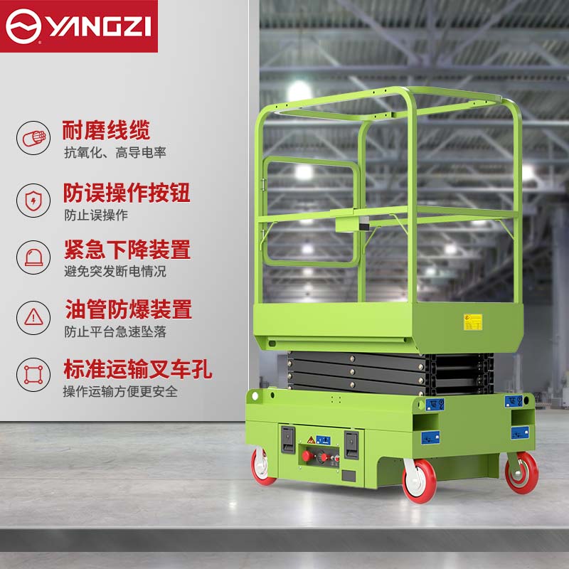 揚子升降機手推剪叉式升降平臺JCPT:移動方便,防爆裝置確保即使油管爆裂平臺框不會墜下