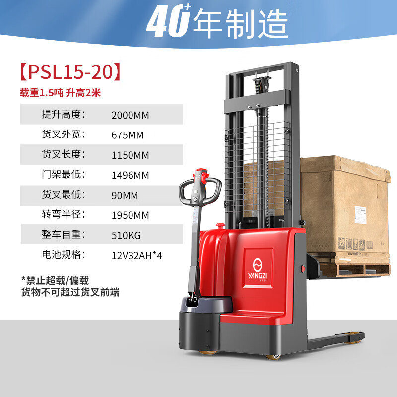 揚子堆高車液壓搬運車升降叉車PSL1520-1.5噸升高2米,VIBO泵站,大功率,動力強勁低噪音